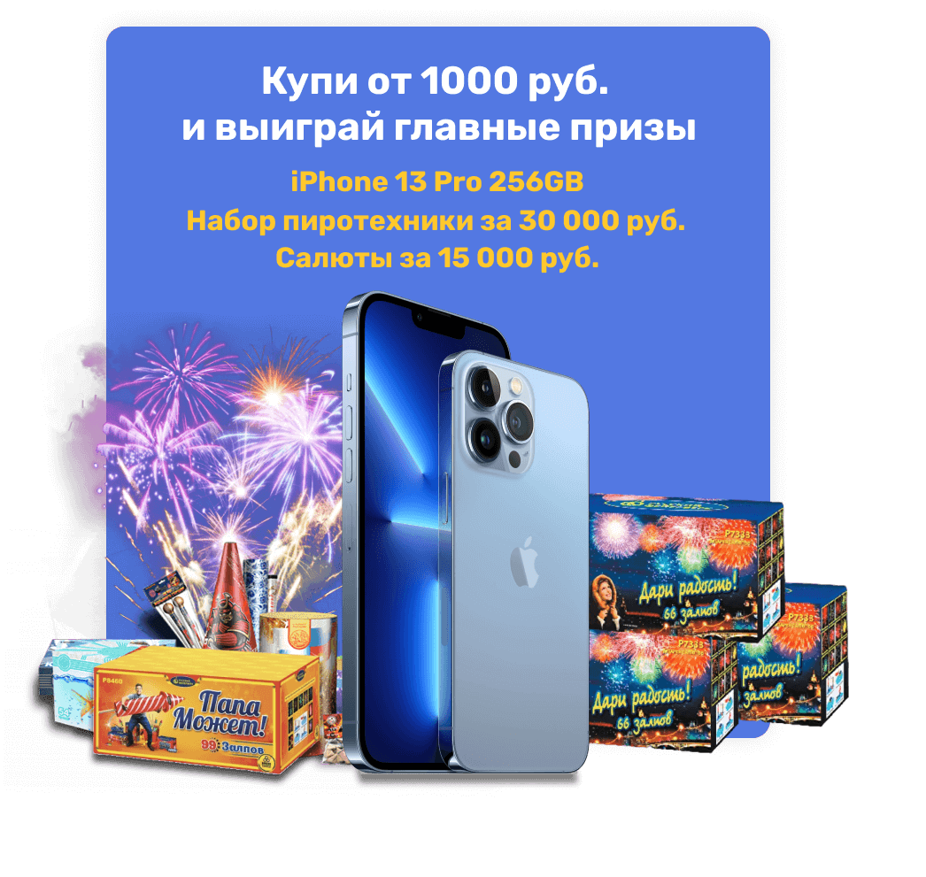 А еще выиграй в день покупки призы на 155 000 руб. Выиграй iPhone 13 pro среди 40 250 призов